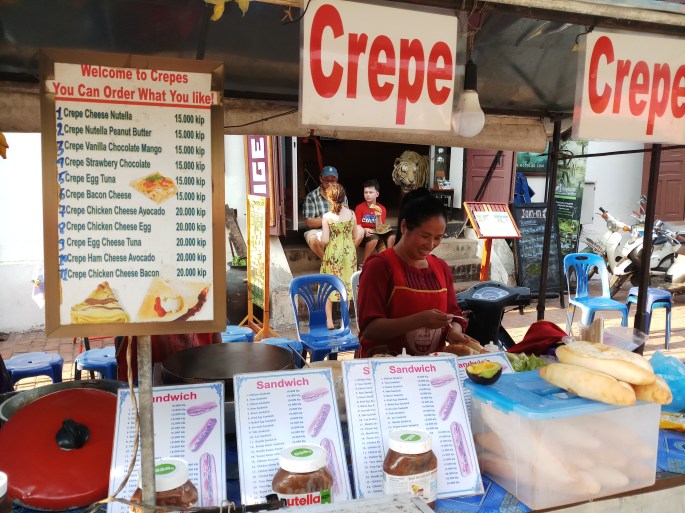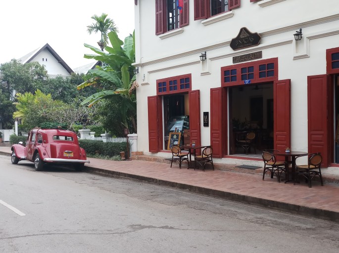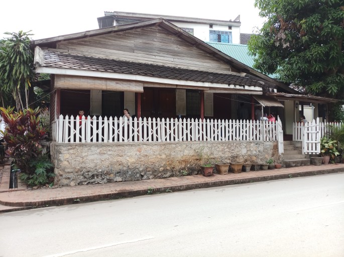 We are in Laos. Luang Prabang, a world Unesco site that was destroyed by Chinese mercenary armies in the late 1800s and only accepted French protection in 1888. The French brought Vietnamese immigrants to help rebuild Luang Prabang and the city became a popular escape for Parisians. Due to royalist alliances, Luang Prabang escaped ruin by the huge number of bombs dropped on Laos by the United States during the Vietnam war. The large French villas, once in disrepair are now revived and charging boutique prices with the influx of new money.