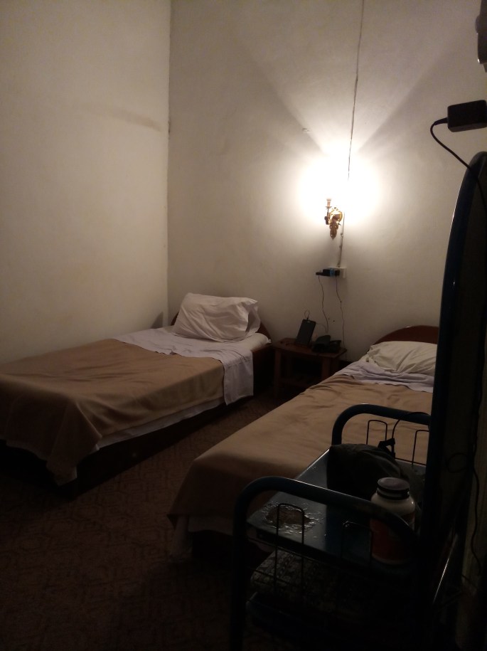 I think about cockroaches crawling over me at night and rats scurrying up the open drain in the bathroom. We have two adjoining rooms with doors that go out onto a balcony over the street.