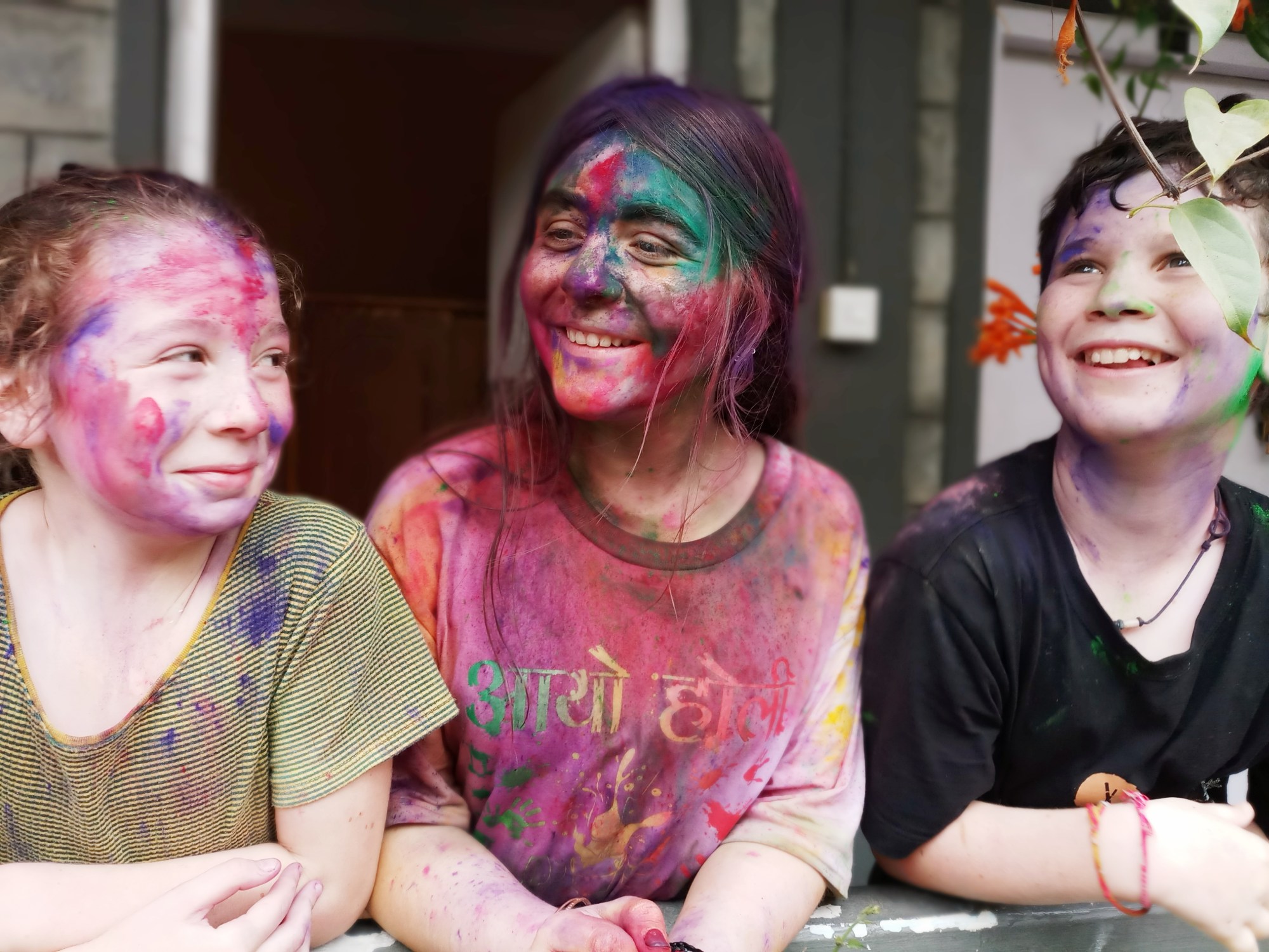 We met Shai and Noa, father and daughter traveling for a month in India and Nepal and our children quickly joined forces to play Holi in the streets with other children.
