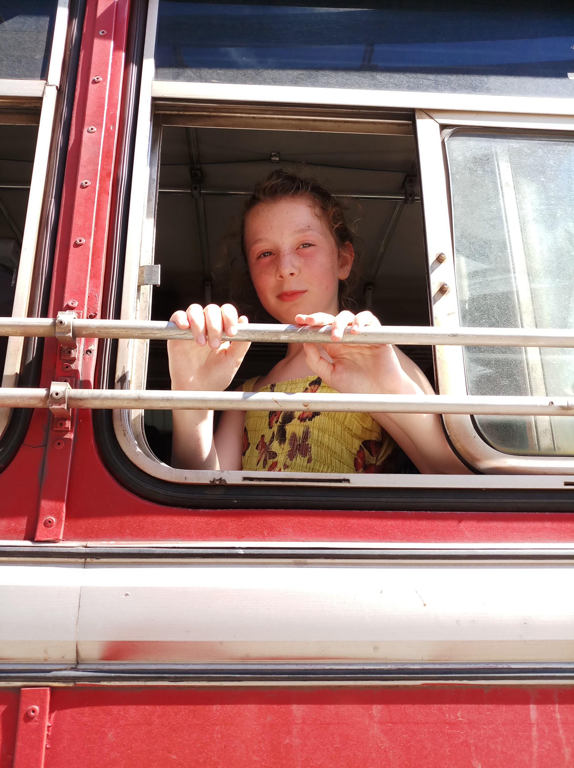 We took the local bus from Trinco to Anuradhapura. Our four hour journey cost .90 each. The buses are fairly comfortable (when moving the breeze is adequate to cool the carriage) and if one has a seat. By contrast a car and driver costs $55 for the same trip. Travel in Sri Lanka can be quite affordable if you choose.
