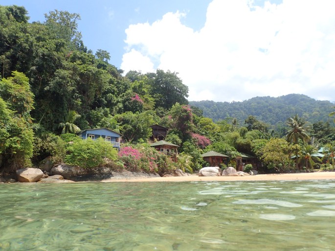 Our days are simple. We sleep with our doors to the balcony open. The wind and ocean are loud and right there. The breeze is glorious and with ceiling fans, it is very pleasant and remarkable bug free. I wake early, stumble around the “chalet” which is really a wooden rustic structure with two small rooms, kitchenette and bathroom, heat water and make nescafe (the coffee of the world) and sit on the balcony, reading my book. We set up a hammock which is also great for lounging. Everyone wakes slowly in the next hour or so and then we make our way across the beach to the ABC restaurant for garlic toast, fried eggs and teh tarik (milky sweet tea). This is a real Malaysia village and we are highly motivated to learn the language so that we can communicate with the locals. We practice all the time. Salamet Pagi, good morning! The owners of Bamboo Chalet Tioman are the friendliest and most helpful. Sue (from London, but a transfer to Tioman over thirty years ago when she married a local), her son Ben and daughter Juliana. Also, Warry, a helpful friend who works at Bamboo helps us daily with language and tips for Island life. High tide is around 11am, so we play on the beach and swim. Then we either walk somewhere or read books, ect. The restaurants close from 1pm until 7pm so we often go without lunch. Excellent for the waistline.