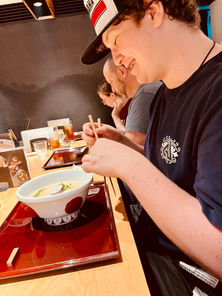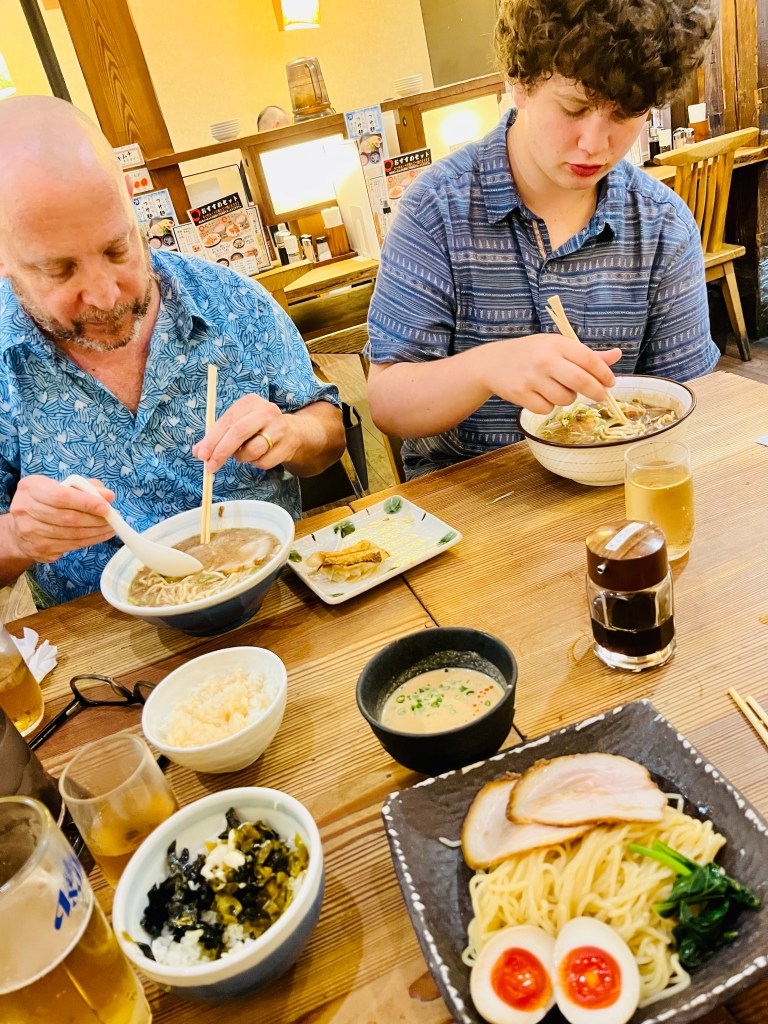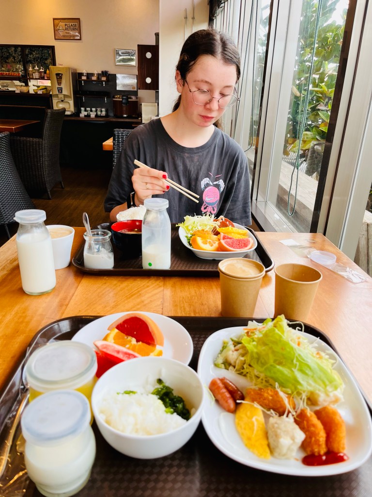 The first beach resort wanted 2500 ($17) yen to rent one chair and umbrella for one hour. On principle we just could not pay it. As a result both boys got a nice burn, as the water was the only place we could comfortably hang.