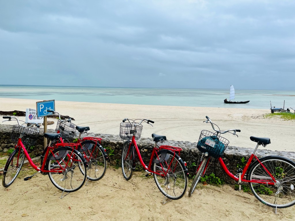 Today’s beach, Fukasi actually had biting fish, Cork has small open chunks taken out of his shins. We again went to a resort and this time were able to sit in the chairs with sun umbrellas as the resort surveillance was loose. It was a good thing that we had coverage as it poured rain. Luckily both beaches were an easy 30 min bike ride so we did not have to take a bus.