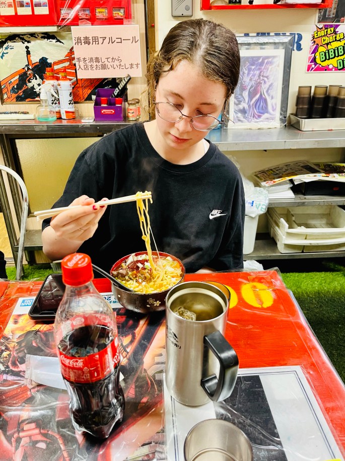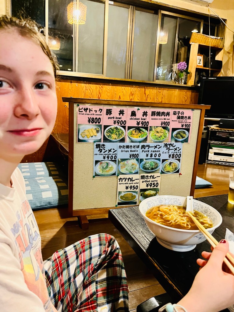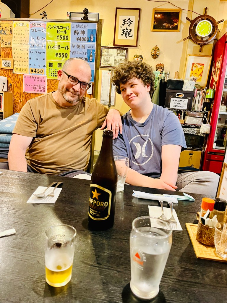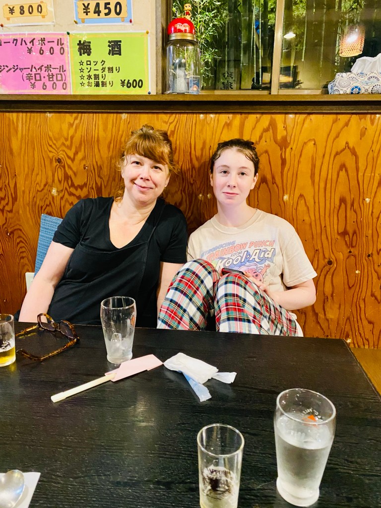 The owner was over the top friendly. The air inside was warm and thick. Loud Japanese rock videos played on the TV screen at the end of the dining room. I was grateful for my very cold Sapporo. Our food was filling and flavorful. It was an interesting start to our adventure but I looked forward to sleep.