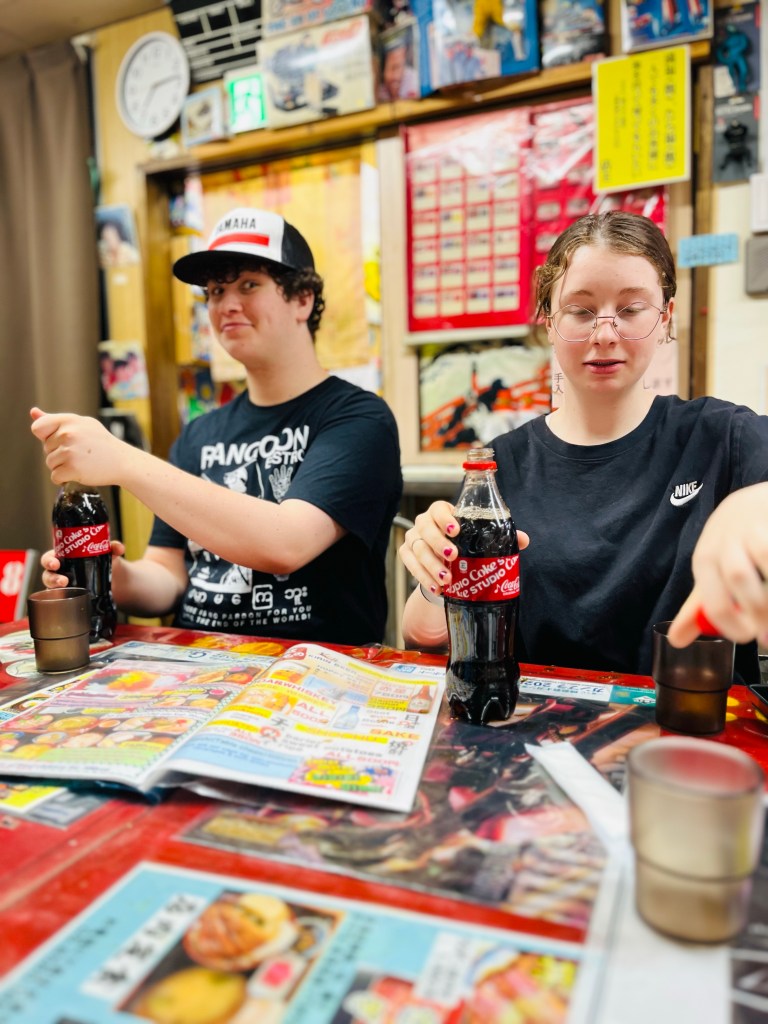 On the whole, the default in Japanese culture is politeness and generosity of spirit. Our hostel host went out of his way to give us information about the area and 711 clerks smile in greeting and bow when we leave. At this restaurant the owners presented us with presents of handmade bags. The people in Japan have been really nice and patient with our Google Translate assisted conversations.