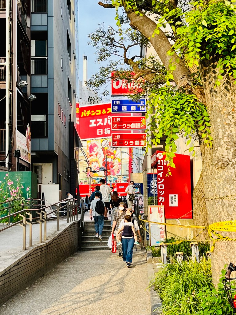 There is a large bridge that elevates the walkway connecting Ueno’s business district with the east and west sides of JR Ueno Station and Ueno Park. It is wonderful to be high above the hustle and bustle. Yesterday the weather cooled a bit and the breeze felt on the walkway was delicious.