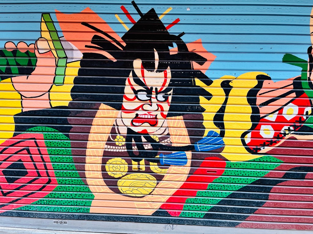 Tokyo does not have a large street art scene, graffiti is punishable by 5 years in jail. However there are cool murals painted on the security metal doors while shops are closed.