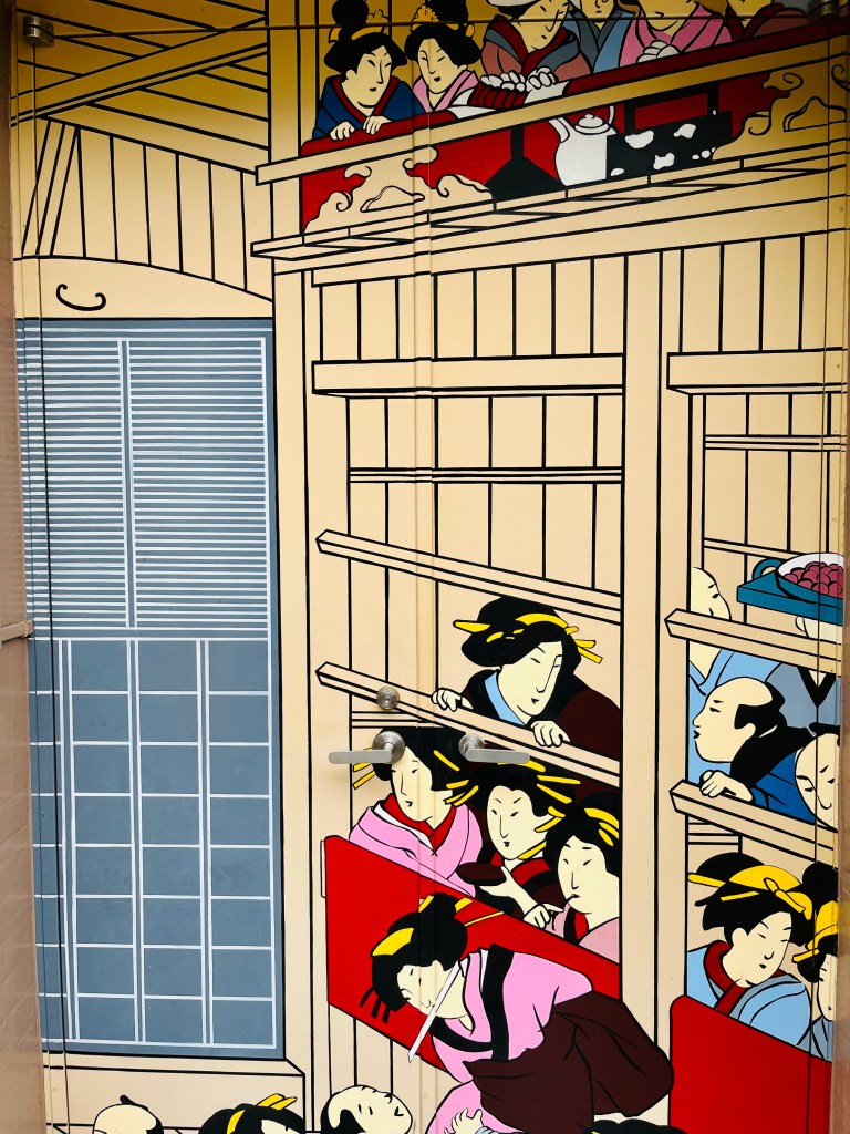 If you ever want to feel very big, visit a country built for men that average 5’3 and 130lbs. We crowd into spaces not made for us, jostle for space that does not exist. Even the cars and trucks are miniature, darling really. If I ever come into a large some of money I am importing one. In addition, perhaps because of the limited land space that Japan occupies, people are adept at taking up less space. They speak quietly, bow, movements small and purposful. The traditional dress of kimono and wooden shoes restrict movement and women have to walk in very small almost shuffeling steps.