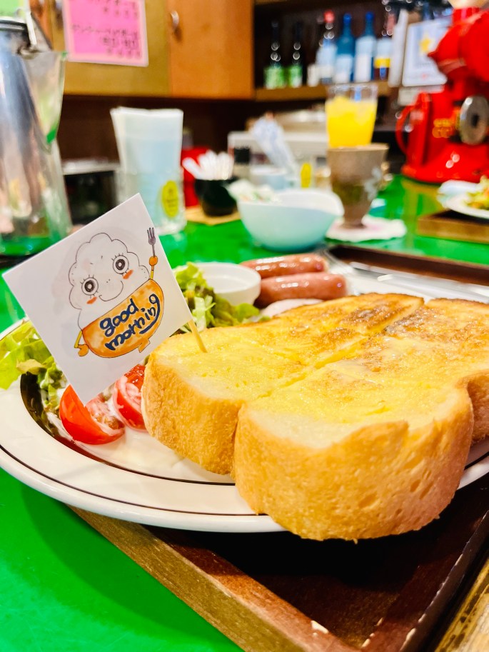 Our favorite restaurant was run by an older couple and their adult daughter. They were incredibly nice and created a wonderful breakfast with such care. Many restaurants in Japan have eclectic assortments of toys or movie posters. This establishment had a huge assortment of record albums and a record player. Cork chose Bossa Nova for breakfast.