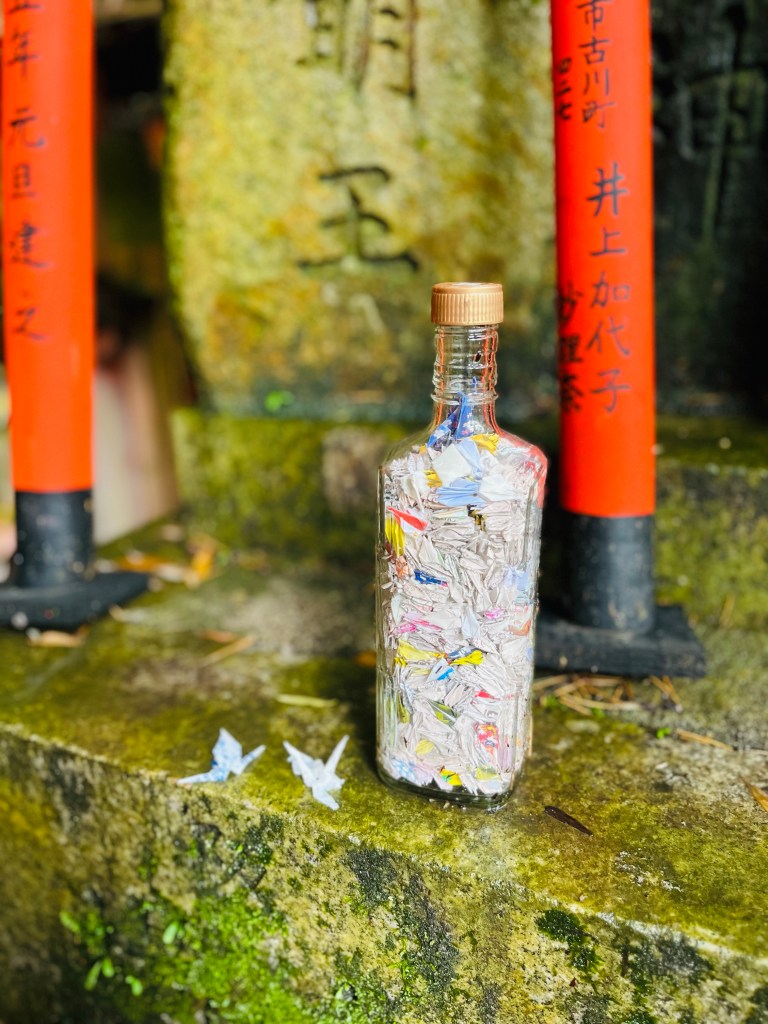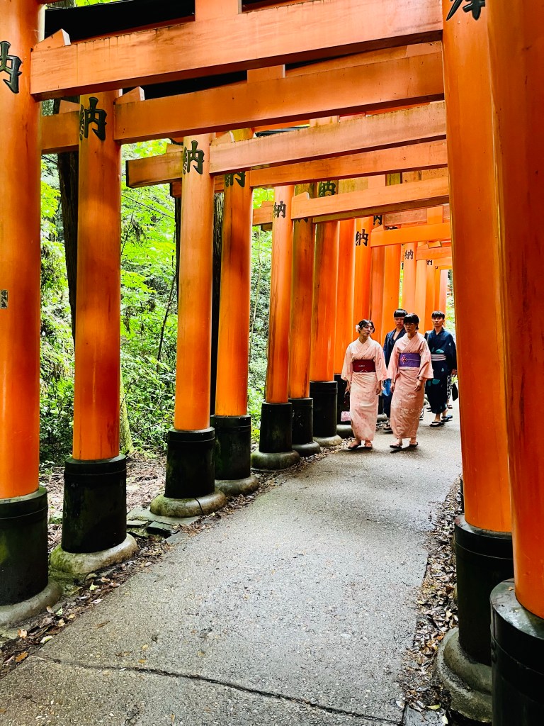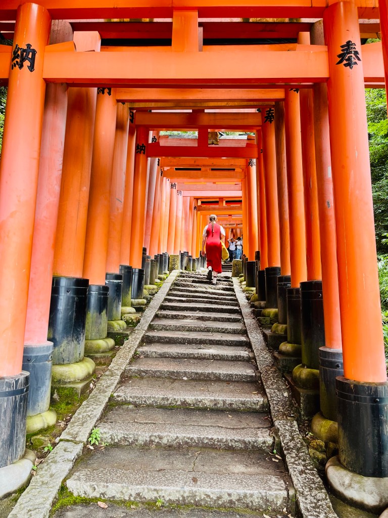 We visited the most popular tourist attraction in Japan. It was hot, muggy and packed with visitors from all around the world. We are not used to being around so many people and the experience was diminished by the crowds. There are over 30,000 Shinto shrines in Japan and traditionally people gather to pray for bountiful harvests, business prosperity, the safety of their home and family. This iconic shrine, built 1300 years ago is now a must see Kyoto instagram moment. I did not see a lot of praying happening. Despite the crowds I was able to capture the beauty of the space in small moments. I can only imagine how peaceful and special this place would be quiet and empty of loud tourists.