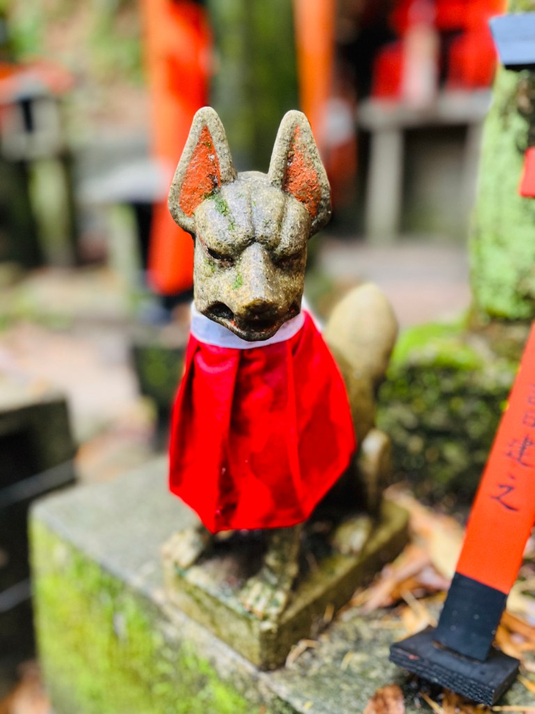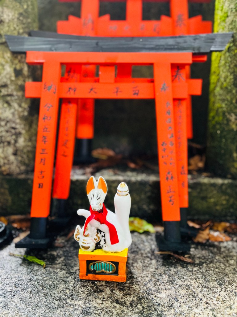 Tradition says the Shinto kami Inari sends messages by fox—きつね or 狐 in Japanese—pronounced key-tsu-neh in English.