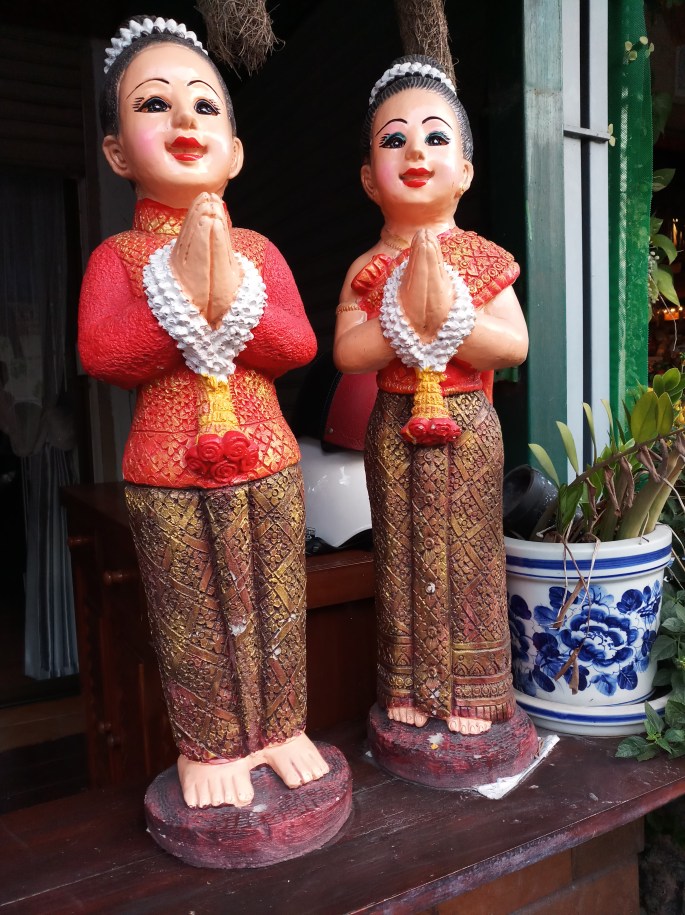 As with life in the States, our days revolve around our main activity, eating. Unlike home, we eat out almost entirely. Normally we skip breakfast and have our first meal of the day around noon. However now we are in a guesthouse that provides breakfast (sticky coconut rice, mango and hard-boiled egg) Common Thai fare that you can find everywhere consists of Curry, StirFry, Noodles and Papaya salad which can be purchased with rice for 40-60 baht ( less than $2). Mango smoothies or ice coffee 30-50 baht. We try to save money by not buying drinks as they effectively double our meal’s cost. The kids love Green Curry and get it where ever we go. “mai pet” not spicy is Addie’s preference. My favorites are the stir fried Morning Glory and tofu with Som Tom (Papaya salad). We plan to take a cooking class in the near future and hope to learn how to make the green curry.