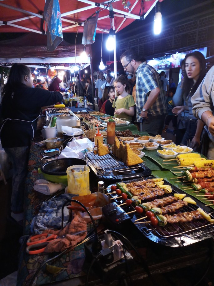 There is fried street food and meat that can be purchased for under a dollar. The kids love fried bananas, you can buy a bag for 20 baht.