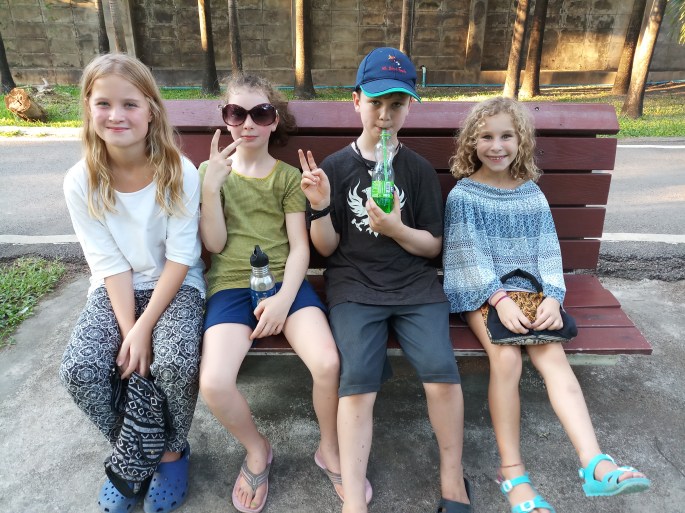 Through Our Tribe Travels FB group we met Vicki, Mike and their daughters Amy and Izzy. After meeting we continued to meet daily and have adventures together, movies, swimming, playing in the park and eating many meals. We all connected beautifully and it was really nice. It felt good to laugh and relax. We hope to cross paths again in Cambodia, maybe volunteer together in a village near Siem Reap.