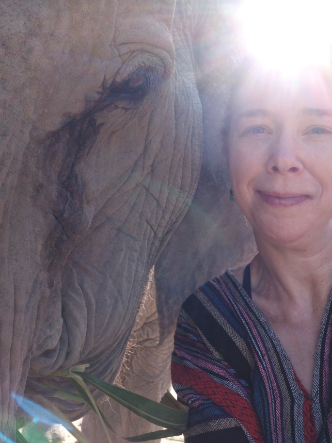 I had no expectations of the day. My only experience with elephants was in a zoo setting, from a distance. We spent all day with these animals. I was able to feed them, touch them, swim with them and walk through the jungle alongside them. We saw them play in the river and rip small trees out of the ground and carry them like large pull toys through the forest. I was able to stand, and look into the huge heavily lashed eye of a 60-year-old grandmother and just be with her, forehead to forehead. I did not hold strong feelings about elephants before this experience. That has changed. I have changed. Now I understand. I was able to really see them. The more I learn about them, their capacity for grief, learning, communication and long memory, the deepening sadness I feel as I watch in real-time their habitat diminishing. Most elephants in SE Asia live in captivity and sanctuaries, their numbers are 50,000 (50% of that number live in India) down from over 300,000 one hundred years ago in the wild. Logging, development and human encroachment have stolen their jungle, their home.