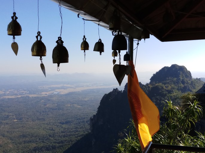 The view from the temple is of the rolling Thung Thung Valley below. Thirteen years ago the white stupas were built on the cliffs by a dedicated Lampang monk and 46 workers, who spent two years carrying up materials on foot, daily, until its completion. The dedication to spirituality in this modern day of conveniences is inspiring.